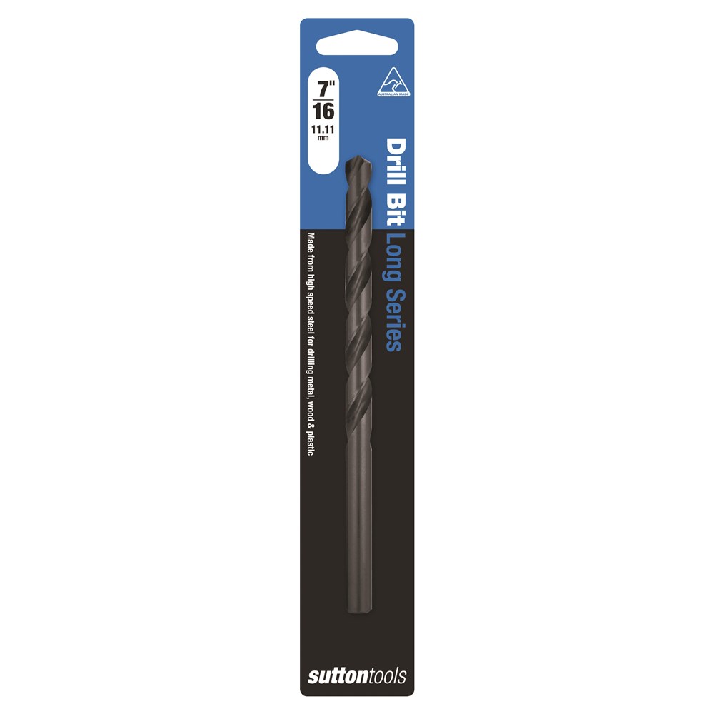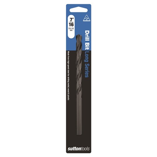 Sutton Tools Long Series Drills Blue Bullet. These Drill bits offer a longer flute and overall length than standard drill bits making them ideal for drilling deeper holes. Features a 118 Degree standard point for general purpose applications and a precision ground flute designed for fast chip removal. The blue finish is a ferric oxide surface coating which reduces chip build up on the cutting edge, reducing frictional drag, and therefore reducing heat generated. It greatly increases drilling life and ability, especially in ferrous materials such as steel, stainless steels, high tensile steel, alloy and tool steel.