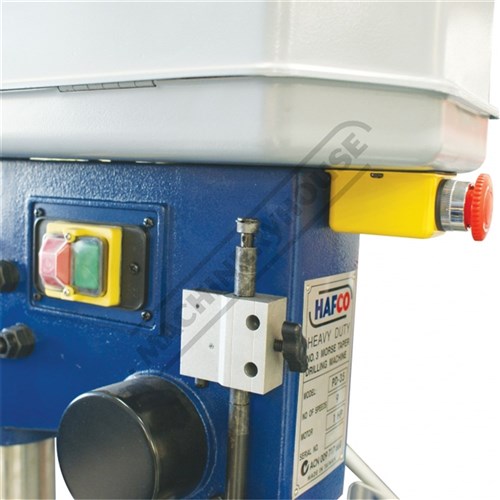 HAFECO 31.5mm WORKSHOP GRADE No. 3 MT Pedestal Drill. Features a 240v 1.0HP motor, high capacity 'B' section belt drive and 9 speeds (180-1680rpm). This is a workshop quality pedestal drill for your workshop. Includes a 16mm keyed chuck and a spindle that will accept no. 3 morse taper drills.