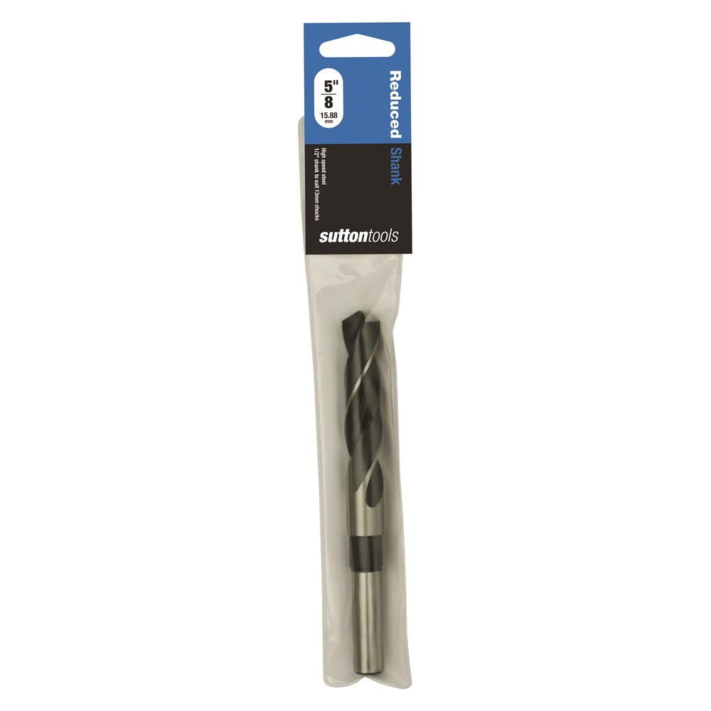 Sutton reduced shank drills are suitable for large scale drilling and low speed boring applications (<350rpm). Featuring 118 Degree point and precision ground fluting for improved drilling performance. Shank size is 12.5mm (1/2")
