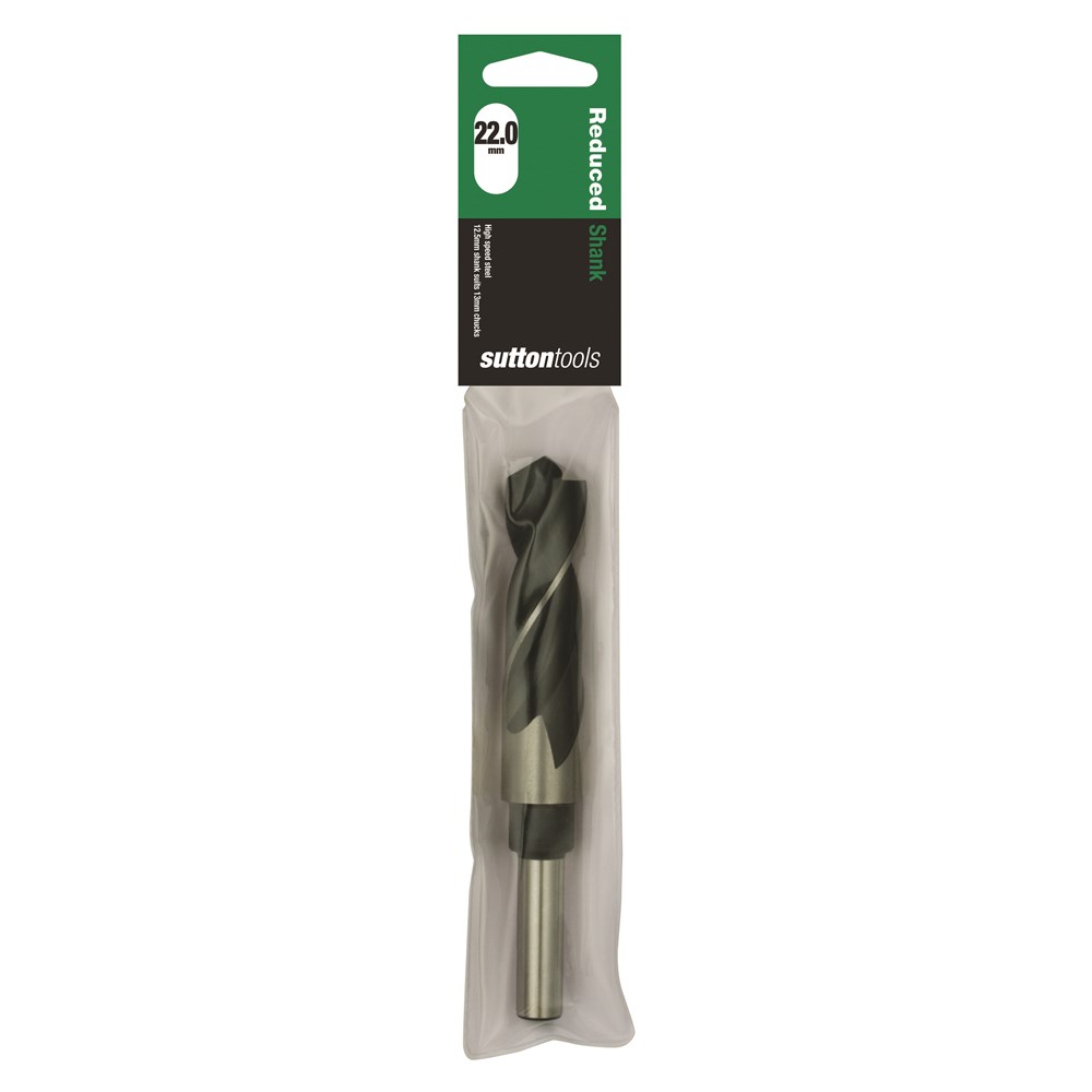 Sutton reduced shank drills are suitable for large scale drilling and low speed boring applications (<350rpm). Featuring 118 Degree point and precision ground fluting for improved drilling performance. Shank size is 12.5mm (1/2")