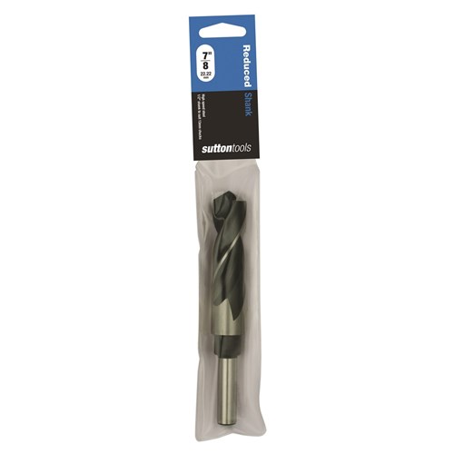 Sutton reduced shank drills are suitable for large scale drilling and low speed boring applications (<350rpm). Featuring 118 Degree point and precision ground fluting for improved drilling performance. Shank size is 12.5mm (1/2")