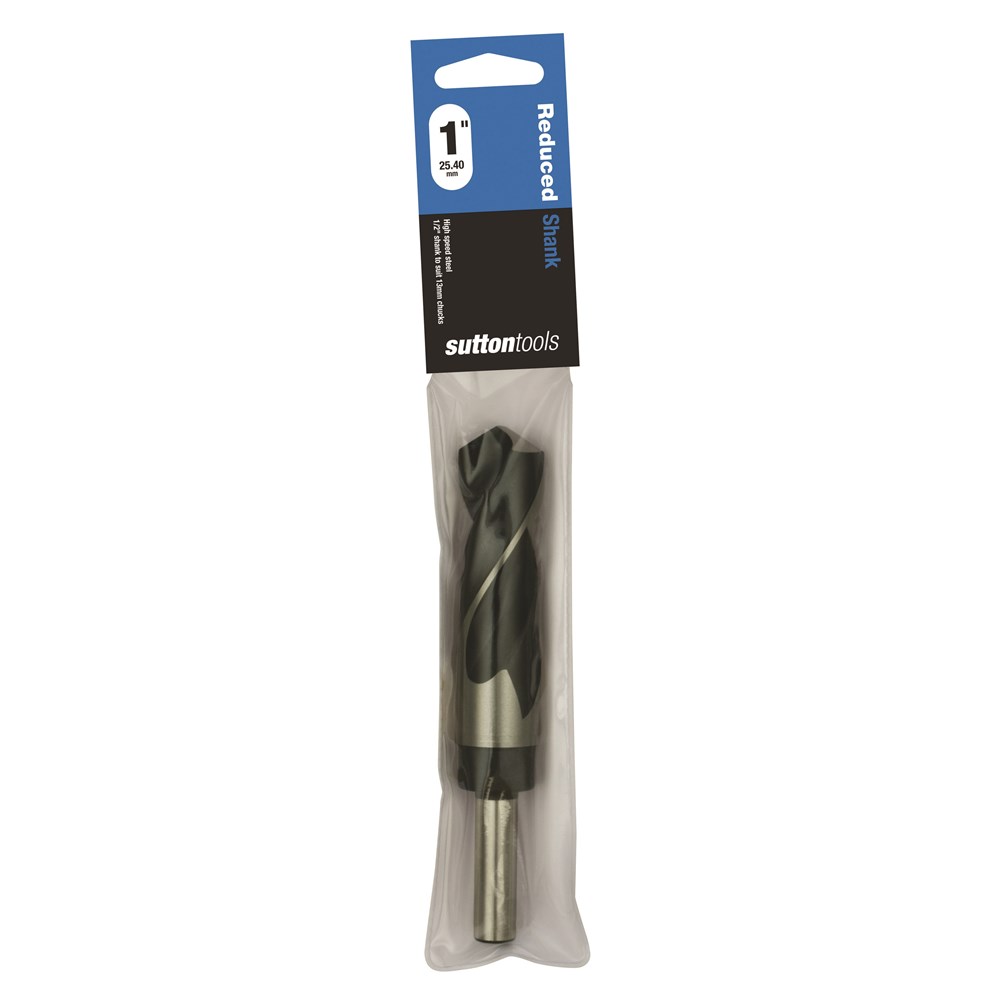 Sutton reduced shank drills are suitable for large scale drilling and low speed boring applications (<350rpm). Featuring 118 Degree point and precision ground fluting for improved drilling performance. Shank size is 12.5mm (1/2")