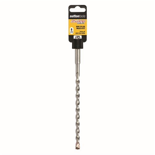 Sutton Tools Masonry Drill SDS PLUS Twister Multi-fit, 210mm Long. The innovative special outlet throats accelerate the removal of drill waste. The tungsten carbide tip is honed for greater accuracy, and an optimised percussion effect, resulting in this drill being 30% faster than comparable products. Twister Multi-fit is the fastest penetrating masonry drill on the market - guaranteed. Suits all SDS Plus rotary hammer drills.