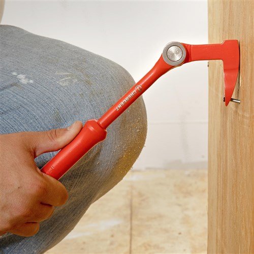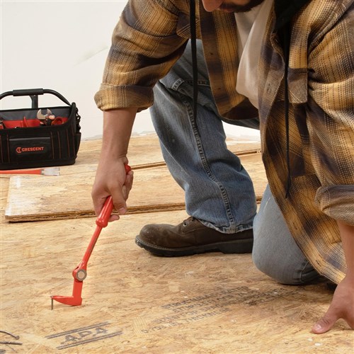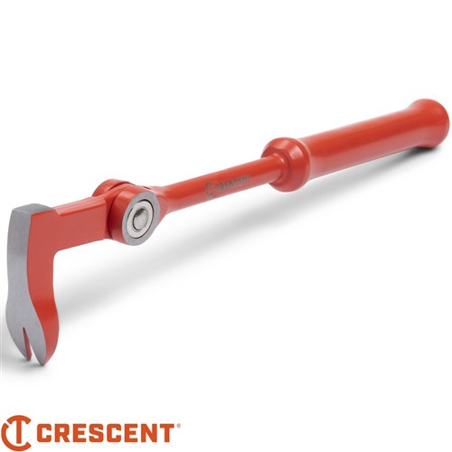 The Crescent 12” Indexing Nail Puller features a patented indexing head design that offers over 180 degrees of movement and locks in 14 positions, providing enhanced access and leverage for tackling tough nails. Its high-visibility, corrosion-resistant finish protects against rust, ensuring long-lasting durability. The raised striking surface allows for use with a hammer or mallet, facilitating easier loosening and penetration of nails or boards. Designed with ergonomic handles for added comfort during use, this nail puller is crafted from highly durable, heat-treated forged steel, maximizing product life and delivering exceptional strength for demanding tasks.
