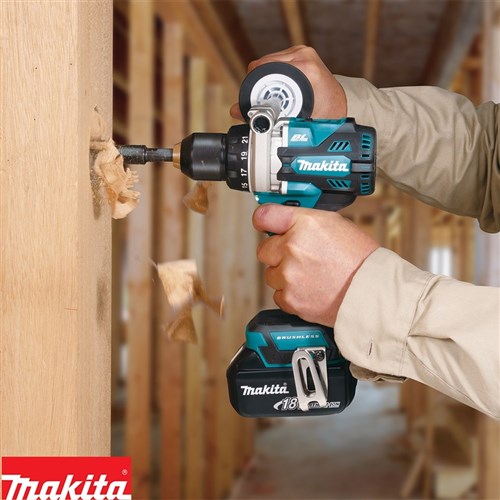 The 18 Volt Brushless Driver Drill provides 141Nm of maximum fastening torque and no load speed of 2,100rpm combining rapid drilling speeds with high levels of torque. This model has been redesigned with a newly designed motor and gear ratio achieving not only more power but also increasing the performance in continuous heavy-duty applications. Not only has the performance on this model been increased but it is also considerably shorter. At 178mm in length this model is also 27mm shorter than the previous model, making it the most compact drill in its class and extremely comfortable to use in all applications.