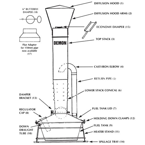- Oil burning Demon Heaters radiate heat and generate the air flow necessary to reduce frost.