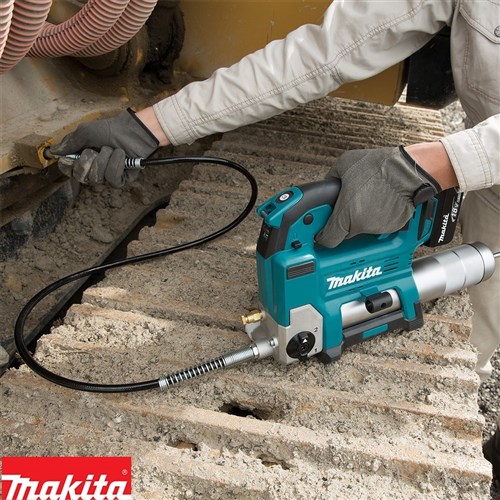 The Makita 18V Grease Gun is designed to provide efficient and controlled lubrication for a variety of applications. Featuring an automatic pressure switching function, it maintains a steady flow rate regardless of pressure changes, ensuring consistent performance. With a 1,200mm flexible hose, you can easily access hard-to-reach areas for precise greasing. The gun delivers a maximum 10,000psi discharge pressure and a 290mL/min discharge rate, providing powerful and quick grease delivery. The variable speed trigger allows you to control the grease flow rate, while the built-in LED job light with a manual on/off switch ensures visibility in low-light conditions