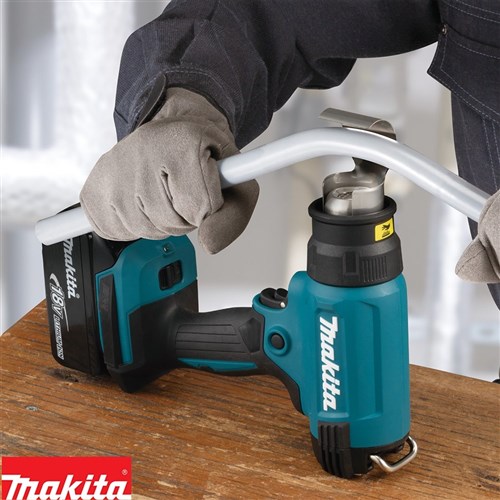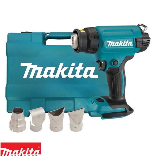 The Makita 18V Heat Gun is a versatile and powerful tool designed for a variety of heating applications. With a temperature control dial offering a maximum temperature of 550°C, you can easily adjust the heat to suit your needs. It features two air volume settings—high (200 L/min) and low (120 L/min)—allowing for precise control of airflow. The lock-on trigger switch provides hands-free operation for added convenience, while the quick-release nozzles make it easy to eject hot nozzles safely without touching them. This heat gun also comes with standard nozzles, including a glass protection, wide slot, reflector, and reduction nozzles.