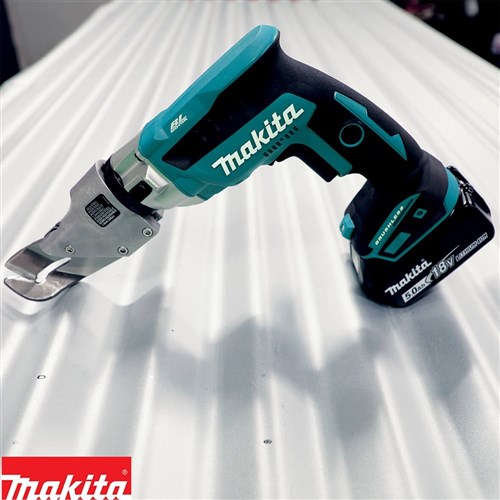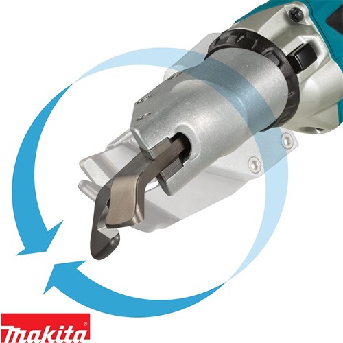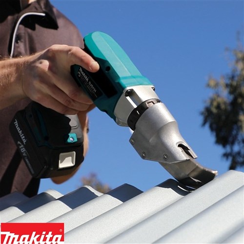 The 18V Brushless 1.3mm Offset Metal Shear is designed to suit the needs of roofers cutting corrugated roofing and many other trades. The DJS131 is built with an efficient Makita Brushless Motor, providing a 3,000spm no load speed, producing a maximum cutting capacity of 1.3mm in mild steel, and 1.0mm in stainless steel. This tool is specially designed and optimised for curved cuts and corrugated roofing, also featuring a cutting head which is 360°rotatable with 12 stops for working at different angles as well as a lock on button for increased convenience and comfortable operation. It also features eXtreme Protection Technology, providing increased protection from dust and moisture for increased durability.