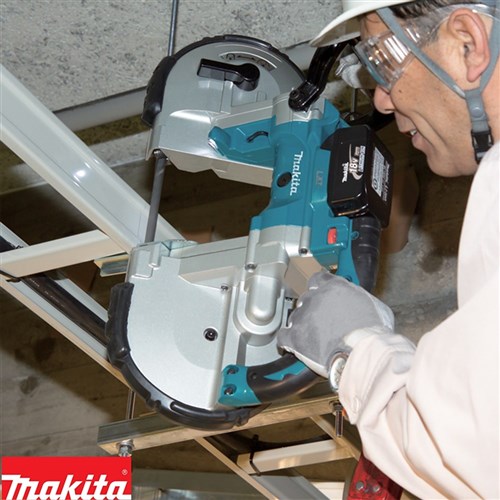 The Makita 18V Mobile Band Saw combines power and portability, delivering smooth, efficient performance for your cutting needs. Capable of cutting up to 120mm in diameter, it ensures precision without the sparks typically produced by a grinder. With a speed pre-set dial and a comfortable trigger control, you can easily adjust the cutting speed to suit your task. The tool features an impressive blade speed of up to 2.7m/s for fast, clean cuts. For added safety, the electronic current limiter provides overload protection and is equipped with a warning lamp. Weighing just 6.4kg, this lightweight band saw offers both convenience and ease of use on any job site.