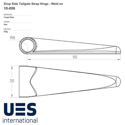 Forged steel drop side tailgate strap hinge. This is a robust hinge designed to be welded into position.