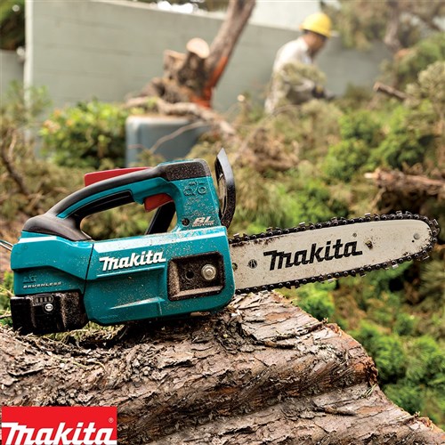 The Makita 18V Top Handle Chainsaw is a compact yet powerful solution for professional tree care and climbing applications. Featuring a brushless motor, torque boost mode, and lightweight design, it delivers efficient cutting with a chain speed of 1,440 m/min. Its ergonomic top handle layout ensures safe and precise operation when working at heights.