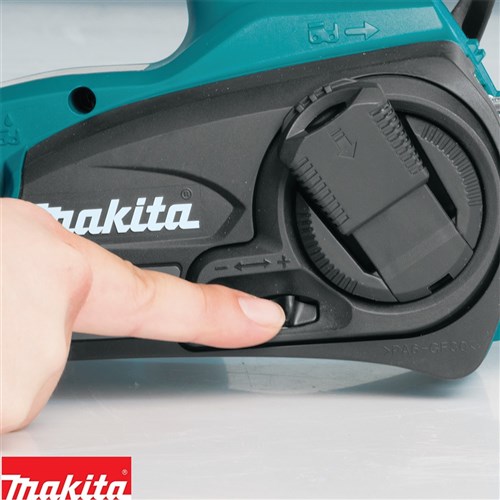 The Makita (18Vx2) Chainsaw 300mm (12") is a compact, efficient, and powerful tool designed for both professional and DIY users. Equipped with a tool-less chain adjustment system, this chainsaw allows for quick and easy tensioning without the need for extra tools. The chain brake and adjustable chain oiling system ensure safety and smooth operation, while the 500m/min chain speed delivers reliable cutting performance. The soft start feature ensures a smooth start-up, minimizing shock to the motor. Additionally, the convenient chain oil level window lets you easily monitor oil levels for optimal performance.