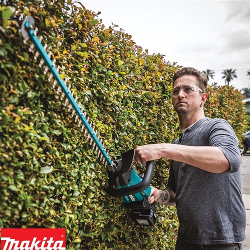 The Makita 18V Brushless Hedge Trimmer 600mm combines cutting-edge technology and ergonomic design to deliver exceptional performance and comfort. Featuring a rotating rear handle that can be adjusted 90° left and right, it allows for easy manoeuvring and efficient trimming at any angle. The anti-vibration structure reduces vibrations transferred to the user, ensuring a more comfortable experience during extended use. With a 21.5mm maximum cutting diameter and 3-stage variable speed control, you can tackle a variety of tasks with precision and power. The blade release function automatically reverses the blade direction if jamming occurs, preventing downtime and ensuring smooth operation.