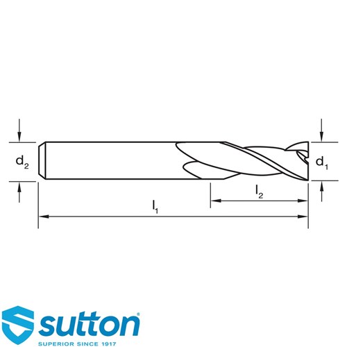 Sutton 2 Flute Slot Drills – R30 N – Regular, precision-engineered for milling slots and cavities with efficiency. Designed for materials up to 1000 N/mm², including soft steels and non-ferrous materials. TiCN coating extends tool life for consistent performance. Upgrade your machining arsenal for precise results every time.