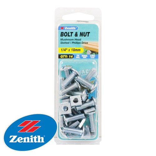 Zinc plated mushroom head slotted machine screws & nuts supplied in a convenient handi-pack