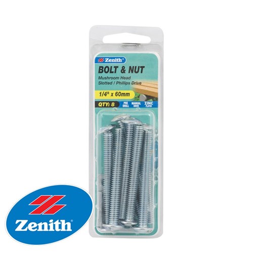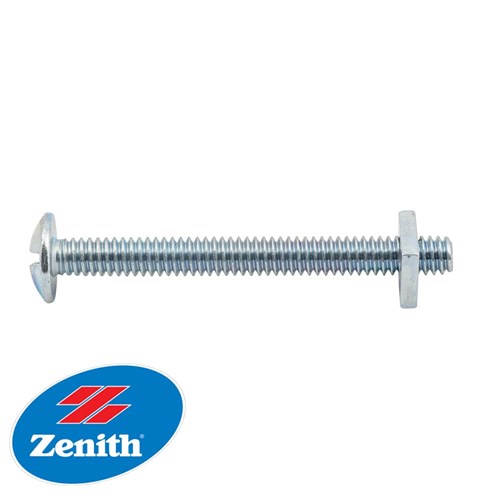 Zinc plated mushroom head slotted machine screws & nuts supplied in a convenient handi-pack