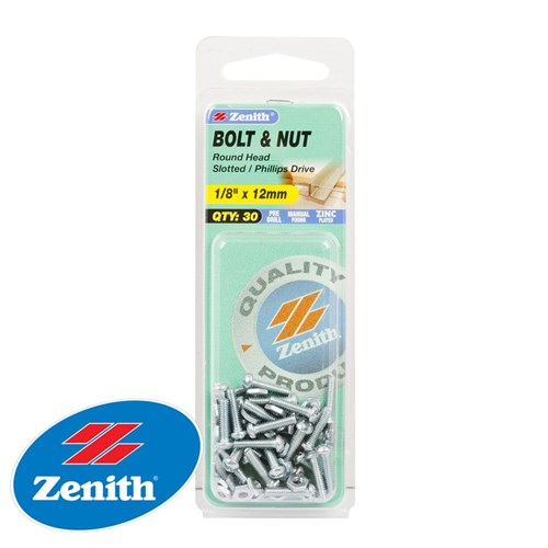 Zinc plated round head slotted machine screws & nuts supplied in a convenient handi-pack