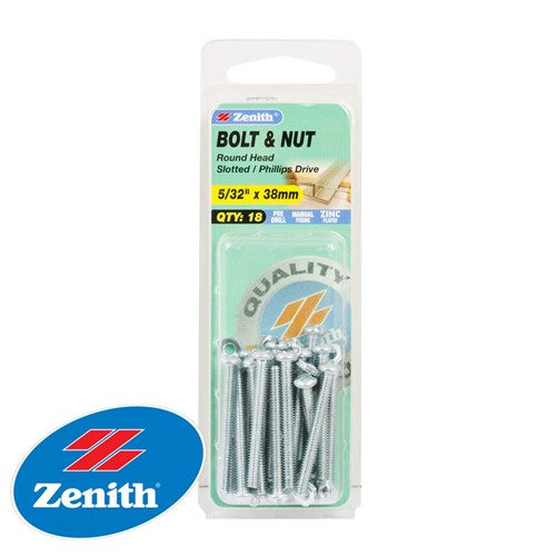 Zinc plated round head slotted machine screws & nuts supplied in a convenient handi-pack