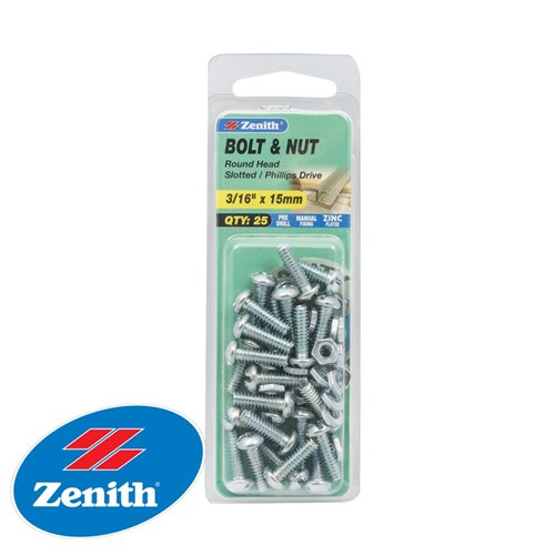 Zinc plated round head slotted machine screws & nuts supplied in a convenient handi-pack