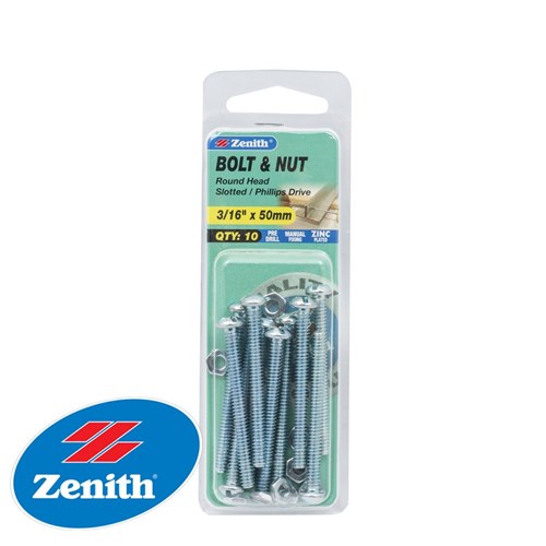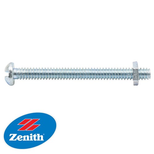 Zinc plated round head slotted machine screws & nuts supplied in a convenient handi-pack