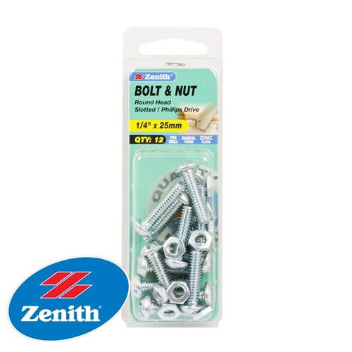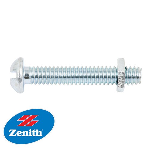 Zinc plated round head slotted machine screws & nuts supplied in a convenient handi-pack