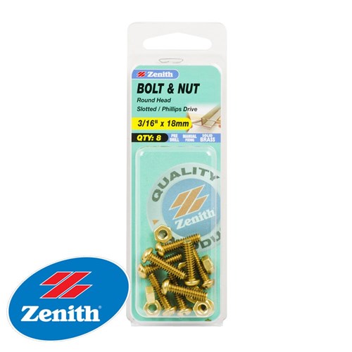 Zinc plated round head slotted machine screws & nuts supplied in a convenient handi-pack