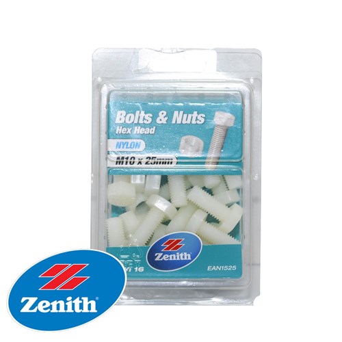 NYLON HEX BOLT & NUT M10X25