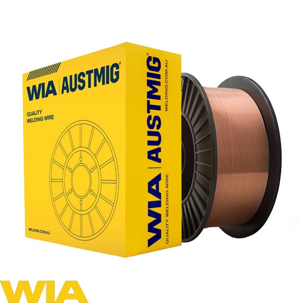The WIA ES609S Austmig ES6 is a premium copper-coated, low hydrogen, low carbon steel MIG wire formulated for optimum performance under CO₂ and Argon/CO₂ mixed gases. Designed for smooth arc transfer and consistent results, it delivers clean, even weld beads with excellent edge wetting across a wide range of mild and medium strength steel applications.