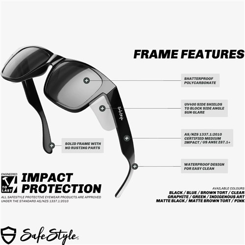 - Certified to AS/NZS 1337.1:2010 and ANSI Z87.1+
