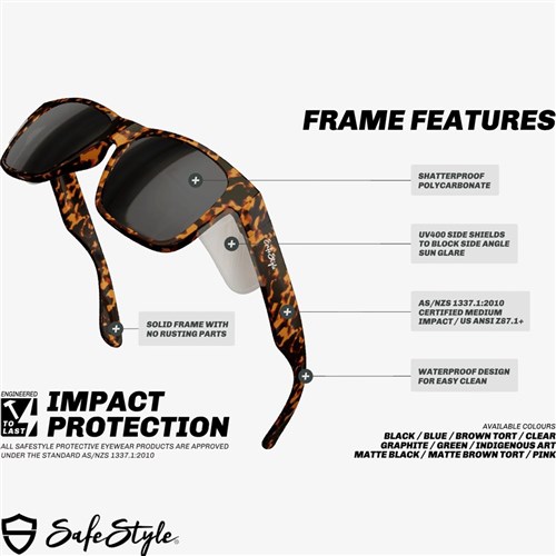 - Certified to AS/NZS 1337.1:2010 and ANSI Z87.1+