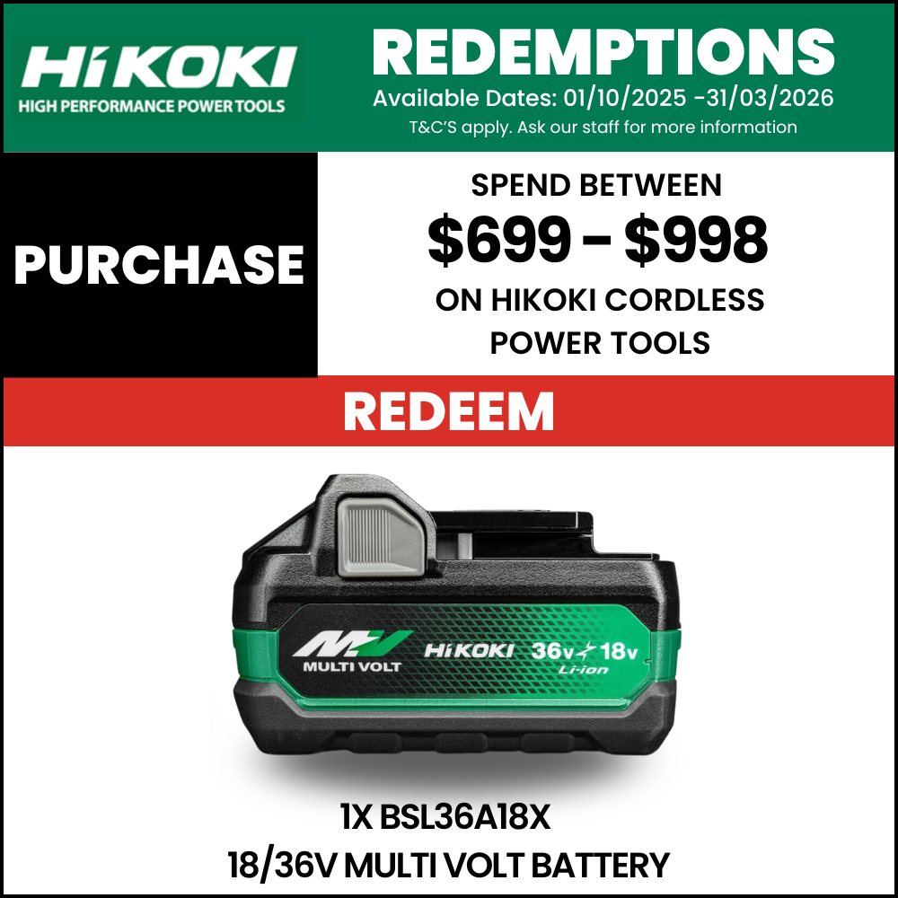 Warranty: 3 Years Standard Warranty Covered By HiKOKI Australia or 6 Years Extended Warranty if registered through HiKOKI Australia website