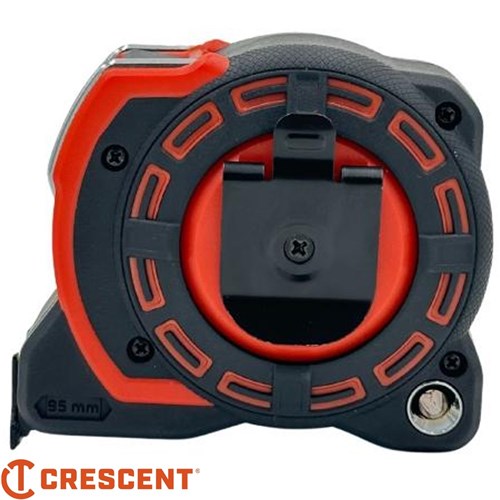 The tape includes a dual-sided blade with a vertical quick-read scale on the underside, making overhead and hard-to-reach measurements easier. The blade has a thick protective coating and an additional barrier on the first 160mm, significantly increasing its durability. An integral belt clip release lever allows for quick and easy attachment and removal from belts.