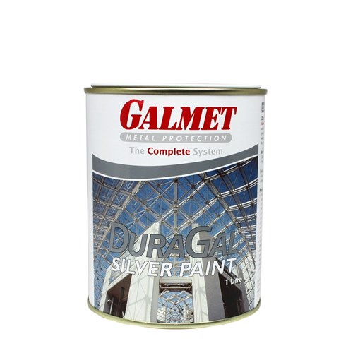 Galmet DuraGal is a quick drying, bright silver coloured, protective coating. It is formulated to provide corrosion resistance to welds and other steel products whilst prov iding the appearance of a new DuraGal or hot-dip galvanized surface. The ultra-high aluminium content in Galmet DuraGal provides a superior barrier to moisture and other corrosive agents for a longer lasting silver finish.