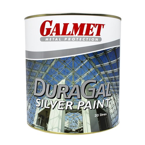 Galmet DuraGal is a quick drying, bright silver coloured, protective coating. It is formulated to provide corrosion resistance to welds and other steel products whilst prov iding the appearance of a new DuraGal or hot-dip galvanized surface. The ultra-high aluminium content in Galmet DuraGal provides a superior barrier to moisture and other corrosive agents for a longer lasting silver finish.