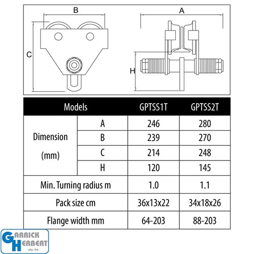 The TOHO Girder Trolley is engineered for superior strength and reliability, crafted from high-quality stainless steel for exceptional durability. This 2T capacity trolley is easily adjustable to a range of beam widths (88-203mm), making it ideal for various lifting applications. It’s built to withstand tough environments, featuring durable stainless-steel labels and smooth operation with standard steel bearings. With compliance to AS/NZS 4991 and international standards such as GS, CE, and ANSI, the TOHO Girder Trolley ensures both safety and performance. Each trolley comes with a test certificate and instruction manual for easy use and installation.