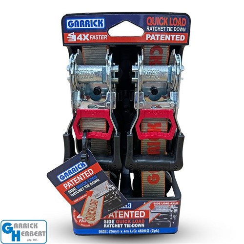 Garrick Herbert QUICKLOAD Ratchet Tie Down – 25mm x 4m x 450kg (2-Pack)