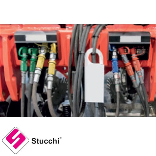 Suited to modern agricultural engineering, as well as industrial and construction industries: the non-slip marking grips are easily mounted into the fluid line in front of the hose end piece as a