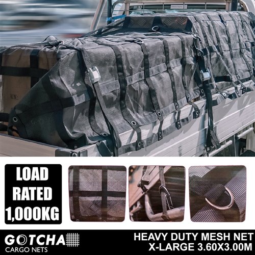 Heavy Duty Mesh Cargo Nets made for australian conditions with a load rating of 1,000Kg.