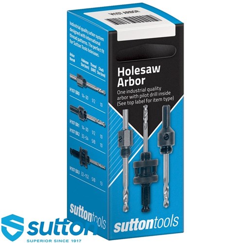 Sutton Tools BA Arbors are an industrial quality, traditional arbor system designed with international thread patters to fit the complete Sutton Tools range of holesaw products.