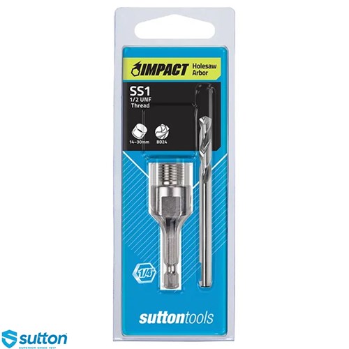 The SUTTON® SS1 Holesaw Arbor with HSS Pilot Drill is built for durability and convenience. Featuring a 1/4"-Hex quick-change shank, it is impact-rated for use with impact drivers and designed to deliver secure, reliable performance. Its 1/2"-UNF thread makes it compatible with holesaws ranging from 14–30mm, providing versatility for a variety of drilling applications.