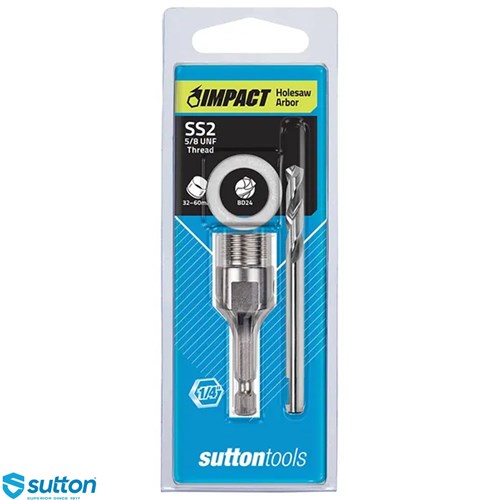The SUTTON® SS2 Holesaw Arbor with HSS Pilot Drill is engineered for strength and efficiency. Featuring an impact-rated 1/4"-Hex quick-change shank, it’s perfect for use with impact drivers, offering fast and secure bit changes. With its 5/8"-UNF thread, this arbor is ideal for holesaws sized 32–60mm, making it a versatile choice for heavy-duty cutting applications.