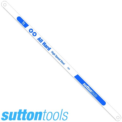 Sutton Tools Hacksaw Blades All Hard HSS (Blue), 24TPI. These blades are suitable for highly accurate cutting & high wear resistance. 24 TPI: For 3-6mm materials eg. conduit, heavy sheet metal & tubing. These hacksaw blades have 300mm hole centres to fit all standard size hacksaw frames.