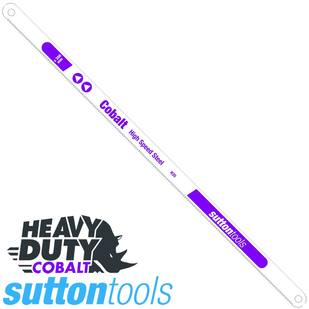 Sutton Tools Hacksaw Blades Bi-Metal Cobalt HSS (Purple), 18TPI. These blades are shatterproof, with superior cutting power & flexibility. The Cobalt material gives these blades exceptional life for tougher applications such as stainless steel. 18 TPI: For 6-25mm materials eg. pipe, angle iron & steel bar. These hacksaw blades have 300mm hole centres to fit all standard size hacksaw frames.