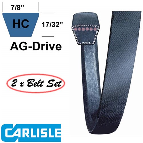 Carlisle SUPER-AG DRIVE Replacement OEM Harvester belts for specific applications. Set of (2) H (Heavy Series) C Section belt features heavy back design to cope with back idlers and extreme conditions. Carlisle belts are designed and built to exacting specifications. Featuring proven performance from extensive lab and field testing and engineered using state of the art technology/materials. Your choice of belt to deliver long-term durability with superior performance.