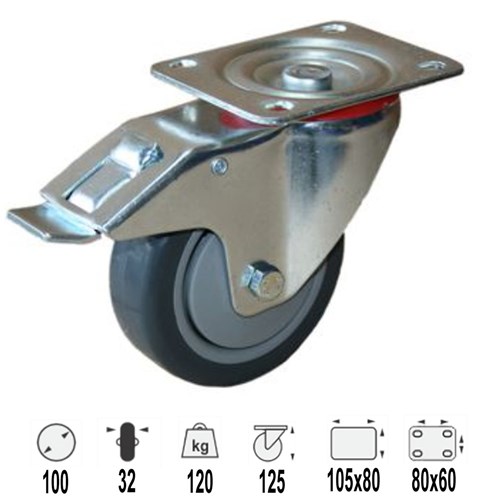 CASTOR 100MM RUBBER BRAKE