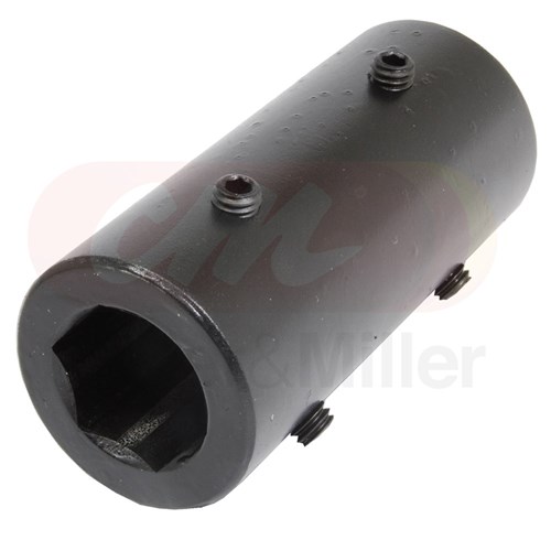 C&M hexagonal bore one piece grub-screw style rigid coupling. This hex bush is manufactured in Australia and is designed as a shaft coupling. It is manufactured from grade 1045 steel and is fitted with 4 grub screws.