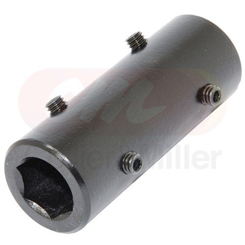 C&M hexagonal bore one piece grub-screw style rigid coupling. This hex bush is manufactured in Australia and is designed as a shaft coupling. It is manufactured from grade 1045 steel and is fitted with 4 grub screws.