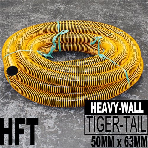 The construction of the HFT hose includes external ridgid spirals that allow for a smooth tube bore and extra flexible hose.  It is also chemical resistant, making this hose suitable for diesel fuels, petrol, oils, sewage and other chemicals. The hose is classed as a suction and delivery hose, however delivery pressures are limited to 3 Bar (45PSI).