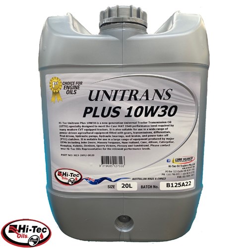 Unitrans Plus 10W30 application does not end at the farm gate, it will improve performance in many off-road applications, particularly in service which places tough demands on power driven components, including off-highway, construction machinery and industrial equipment.